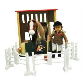 Essiential for every horse owner. Adjust the white fence as you wish and you horse or pony will have a nice paddock. Your horse can happily eat from the hay rack and is protected in its stable. This amazing set includes wooden stable with broom for mucking out. Height 60cm Width and length approc 55 cm. Do not over tighten screws.