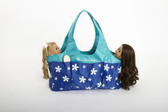Let her take her doll shopping or visiting friends with this handy two doll carry bag, Perfect for all the accessories like brushes and bottle yet light enough to carry on your shoulder. Emblazoned with Treasured Dolls logo.